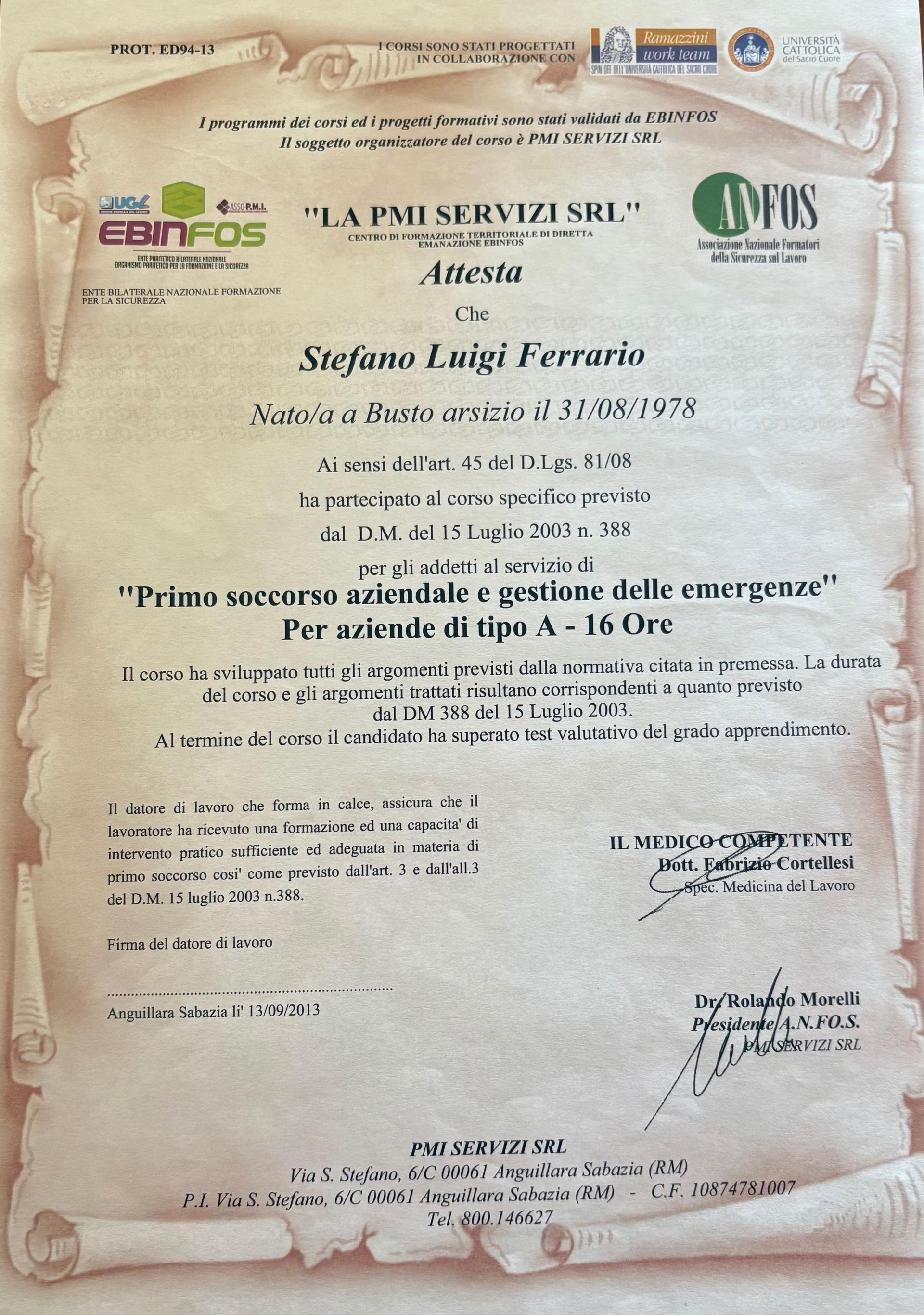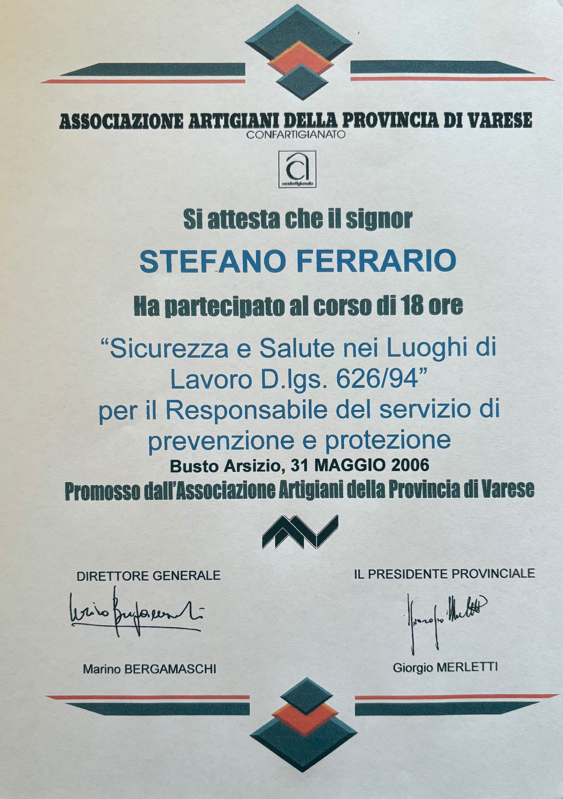 Con il tempo, l’impresa Ferrario è passata sotto la gestione del figlio, il geom. Stefano Ferrario, diplomato presso l’istituto tecnico Carlo Dell’acqua di Legnano. Con una formazione tecnica solida e uno stile gestionale solido acquisite dal padre, Stefano ha mantenuto alto il livello di qualità dei servizi, aggiornando materiali e tecniche per rispondere alle esigenze di un mercato in evoluzione.